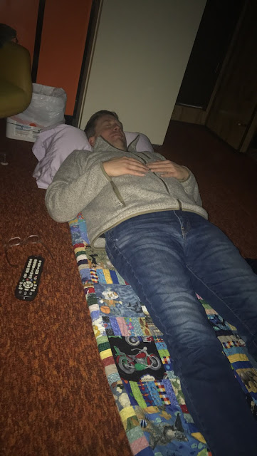 Ken offered to take the floor, but by 3am he hadn't slept at all, so we traded and he spent a few hours in the bed to hopefully be ready to drive the next morning. As it turned out the I15 was still closed, and we made (what turned out to be) the right decision to drive to Del Bonita and crossed the border and continued on from there. Had we waited in Coutts we would have waited for 4-5 hours.